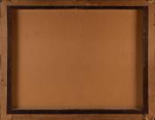 Large folk art painting of a Hudson River scene, o/c laid down on board, unsigned. The painting depicts stone and wooden buildings, a fisherman and a woman talking on a road, a boy rolling a hoop and another fisherman further down the road. Also, sailboats on the river, a forest on the near shore, cliffs on the far shore and mountains in the distance. The painting is in very good condition, having been professionally conserved, and is housed in a custom-made frame. Nineteenth century, New York.
