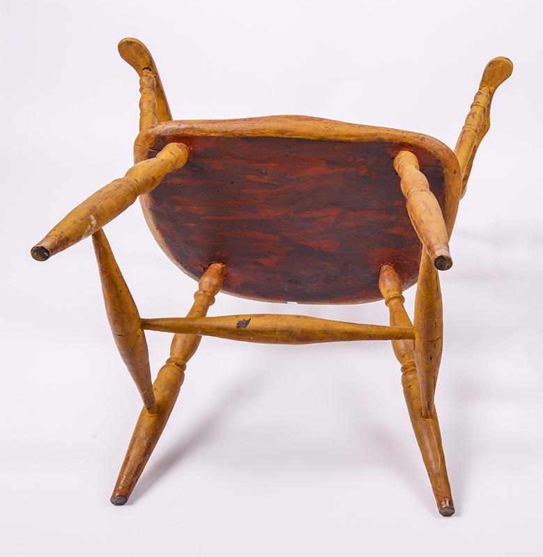 Painted comb-back Windsor armchair. The chair has a beautiful form, with nicely turned legs and arm supports and a wide saddle seat. It is painted with an attractive mustard paint, having been repainted at least twice during its lifetime. The chair is in very good condition and fit for everyday use. 19th Century, New England.