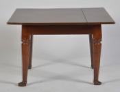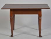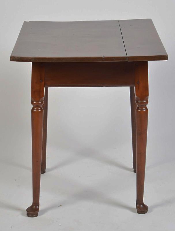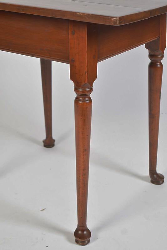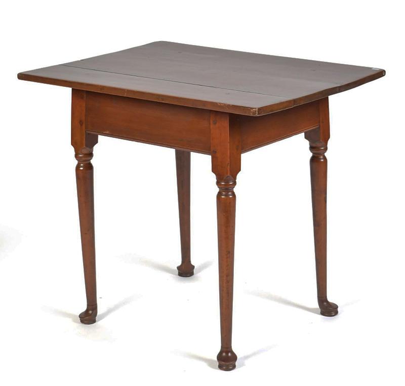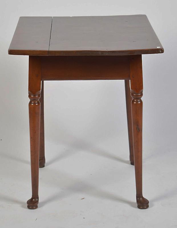 Hepplewhite card table, cherry. The table sports a nicely shaped serpentine top, a single drawer with brass pulls, graceful straight tapered legs and a soft finish. It is in very good condition, exhibiting only the expected wear from age and usage. Circa 1800, New England.